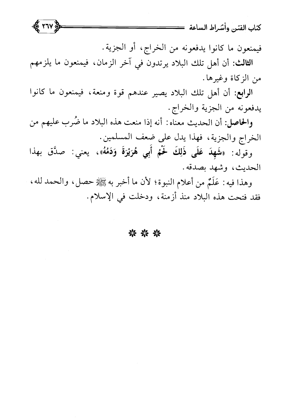 الثالث: أن أهل تلك البلاد يرتدون في آخر الزمان، فيمنعون ما يلزمهم من الزكاة وغيرها.