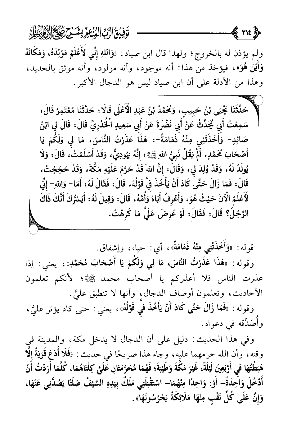حَدَّثَنَا يَحْيَى بْنُ حَبِيبٍ، وَمُحَمَّدُ بْنُ عَبْدِ الْأَعْلَى قَالَا: حَدَّثَنَا مُعْتَمِرٌ قَالَ: سَمِعْتُ أَبِي يُحَدِّثُ عَنْ أَبِي نَضْرَةَ عَنْ أَبِي سَعِيدٍ الْخُدْرِيِّ قَالَ: قَالَ لِي ابْنُ صَائِدٍ- وَأَخَذَتْنِي مِنْهُ ذَمَامَةٌ-: هَذَا عَذَرْتُ النَّاسَ، مَا لِي وَلَكُمْ يَا أَصْحَابَ مُحَمَّدٍ، أَلَمْ يَقُلْ نَبِيُّ اللَّهِ صلى الله عليه وسلم: إِنَّهُ يَهُودِيٌّ، وَقَدْ أَسْلَمْتُ، قَالَ: وَلَا يُولَدُ لَهُ، وَقَدْ وُلِدَ لِي، وَقَالَ: إِنَّ اللَّهَ قَدْ حَرَّمَ عَلَيْهِ مَكَّةَ، وَقَدْ حَجَجْتُ، قَالَ: فَمَا زَالَ حَتَّى كَادَ أَنْ يَأْخُذَ فِيَّ قَوْلُهُ، قَالَ: فَقَالَ لَهُ: أَمَا- وَاللَّهِ- إِنِّي لَأَعْلَمُ الْآنَ حَيْثُ هُوَ، وَأَعْرِفُ أَبَاهُ وَأُمَّهُ، قَالَ: وَقِيلَ لَهُ: أَيَسُرُّكَ أَنَّكَ ذَاكَ الرَّجُلُ؟ قَالَ: فَقَالَ: لَوْ عُرِضَ عَلَيَّ مَا كَرِهْتُ.