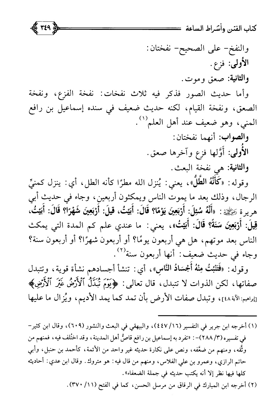 (¬١) أخرجه ابن جرير في التفسير (١٦/ ٤٤٧)، والبيهقي في البعث والنشور (٦٠٩)، وقال ابن كثير- في تفسيره (٣/ ٢٨٨) -: تفرد به إسماعيل بن رافع قاصُّ أهل المدينة، وقد اختلف فيه، فمنهم من وثَّقه، ومنهم من ضعَّفه، ونص على نكارة حديثه غير واحد من الأئمة، كأحمد بن حنبل، وأبي حاتم الرازي، وعمرو بن علي الفلاس، ومنهم من قال فيه: هو متروك. وقال ابن عدي: أحاديثه كلها فيها نظر إلا أنه يكتب حديثه في جملة الضعفاء.