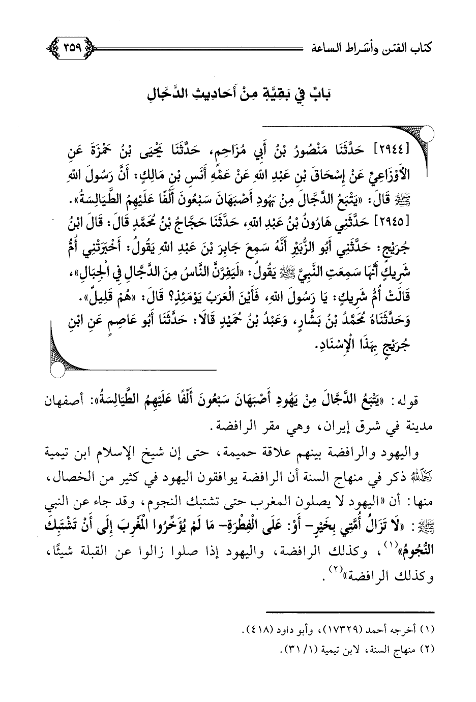 قوله: ((يَتْبَعُ الدَّجَّالَ مِنْ يَهُودِ أَصْبَهَانَ سَبْعُونَ أَلْفًا عَلَيْهِمُ الطَّيَالِسَةُ)): أصفهان مدينة في شرق إيران، وهي مقر الرافضة.