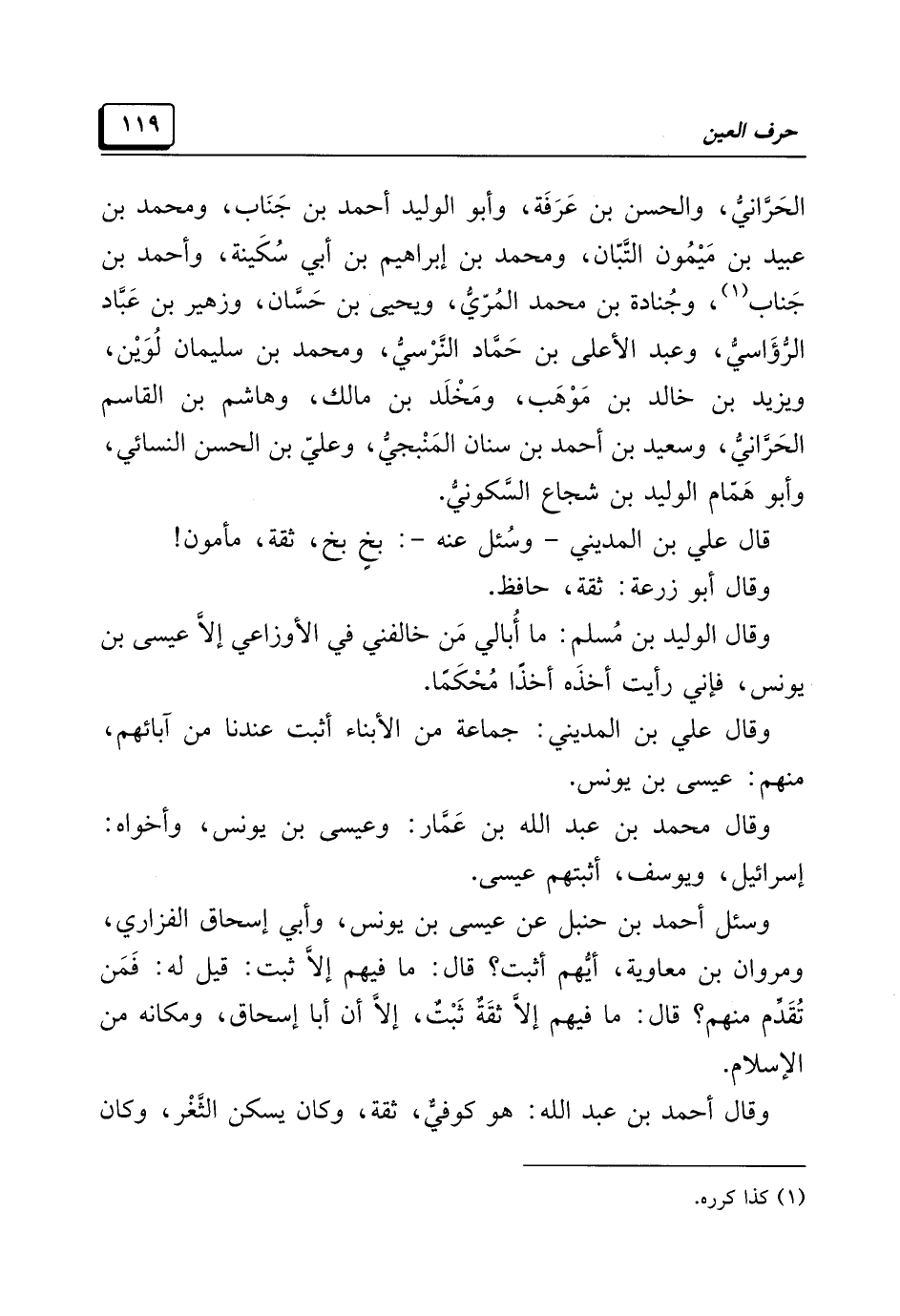 وقال محمد بن عبد الله بن عَمَّار: وعيسي بن يونس، وأخواه: إسرائيل، ويوسف، أثبتهم عيسي.