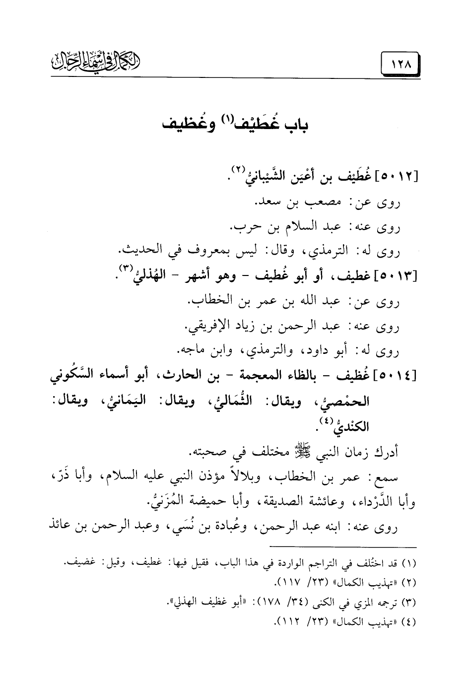 (¬١) قد اختُلف في التراجم الواردة في هذا الباب، فقيل فيها: غطيف، وقيل: غضيف.