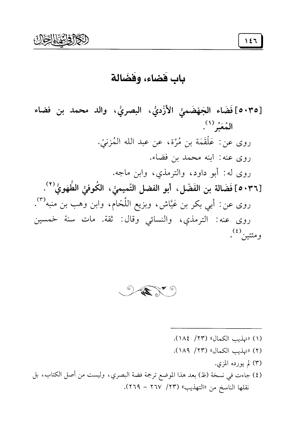 (¬٤) جاءت في نسخة (ظ) بعد هذا الموضع ترجمة فضة البصري، وليست من أصل الكتاب، بل نقلها الناسخ من "التهذيب" (٢٣/ ٢٦٧ - ٢٦٩).