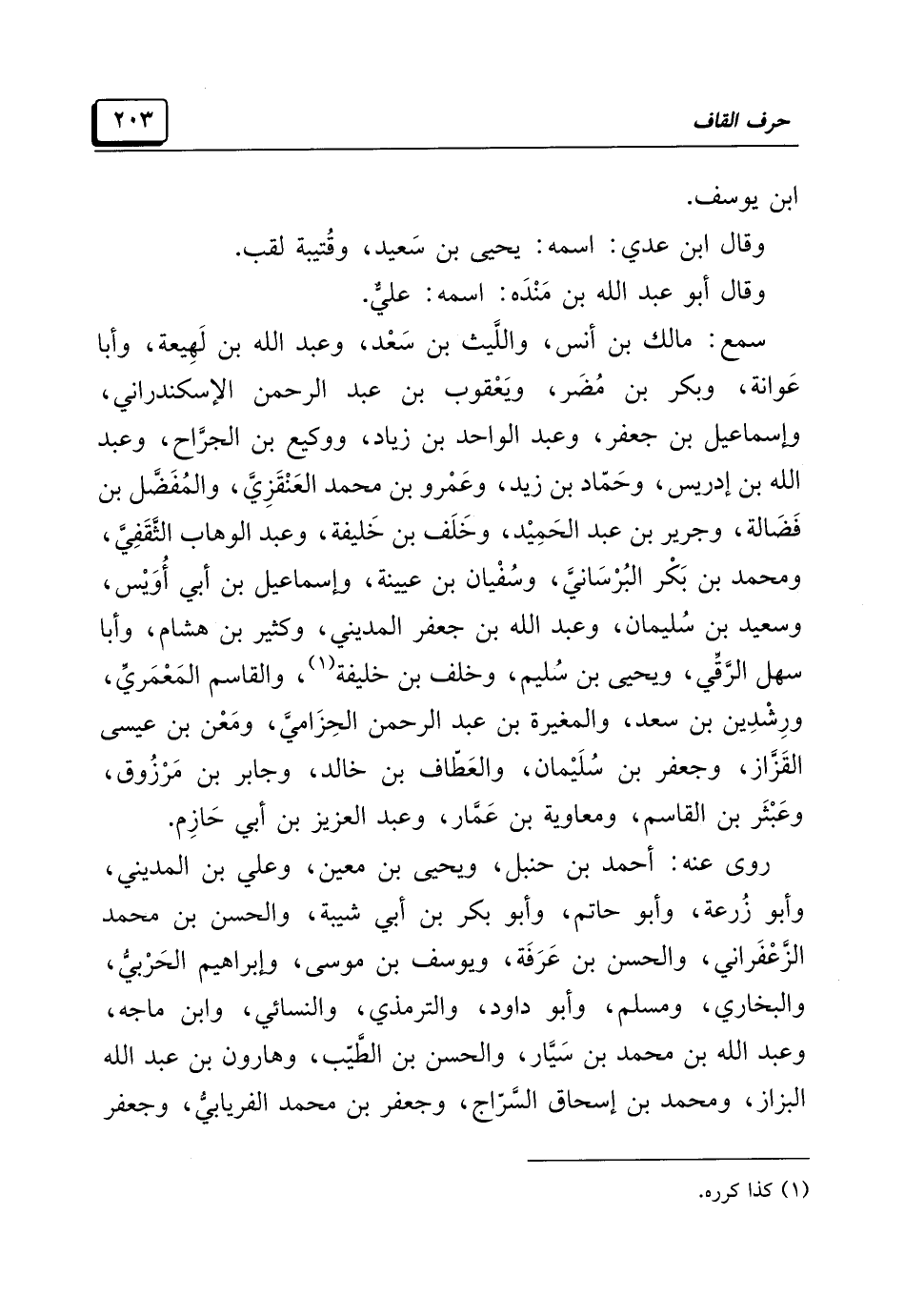 روى عنه: أحمد بن حنبل، ويحيى بن معين، وعلي بن المديني، وأبو زُرعة، وأبو حاتم، وأبو بكر بن أبي شيبة، والحسن بن محمد الزَّعْفَراني، والحسن بن عَرَفَة، ويوسف بن موسى، وإبراهيم الحَرْبيُّ، والبخاري، ومسلم، وأبو داود، والترمذي، والنسائي، وابن ماجه، وعبد الله بن محمد بن سَيَّار، والحسن بن الطَّيّب، وهارون بن عبد الله البزاز، ومحمد بن إسحاق السَّرّاج، وجعفر بن محمد الفريابيُّ، وجعفر