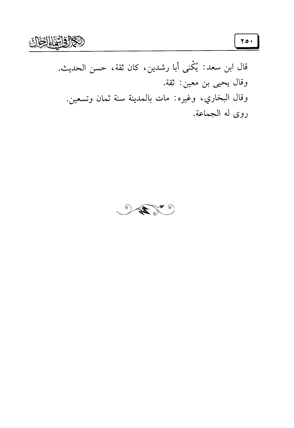 قال ابن سعد: يُكْنى أبا رشدين، كان ثقة، حسن الحديث.