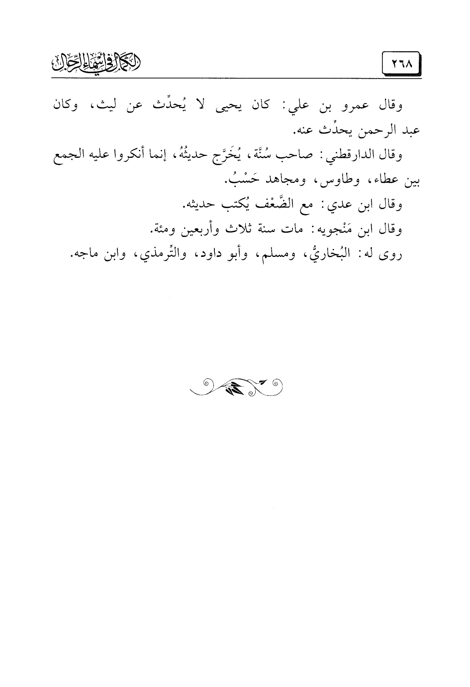 وقال عمرو بن علي: كان يحيي لا يُحدِّث عن ليث، وكان عبد الرحمن يحدِّث عنه.