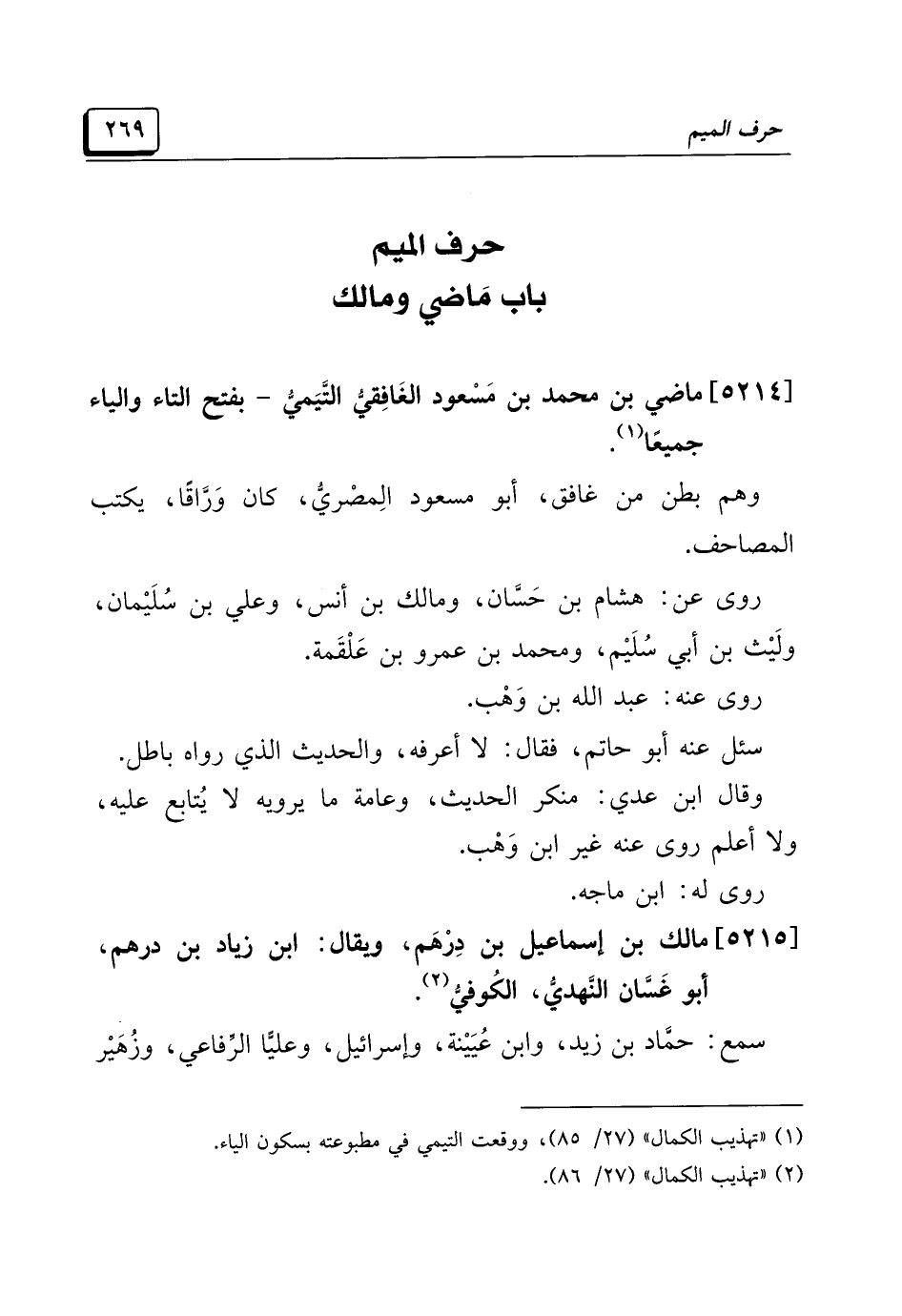 (¬١) "تهذيب الكمال" (٢٧/ ٨٥)، ووقعت التيمي في مطبوعته بسكون الياء.