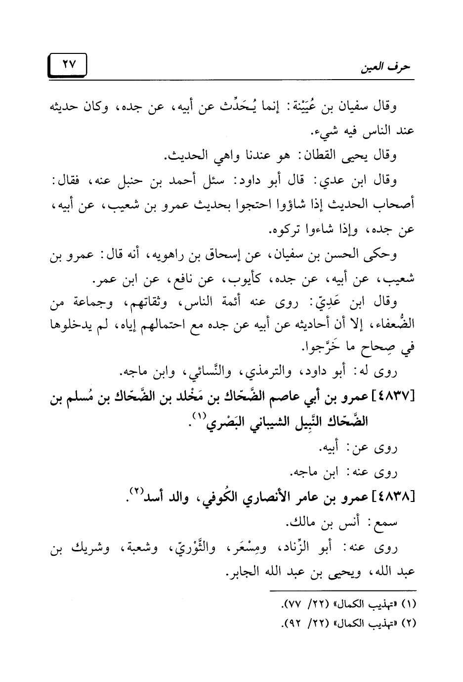 (¬١) "تهذيب الكمال" (٢٢/ ٧٧).