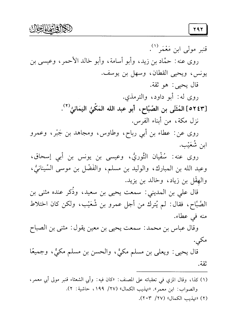 [٥٢٤٣] المُثَنَّي بن الصَّبَّاح، أبو عبد الله المَكِّيُّ اليَمَانيُّ (¬٢).