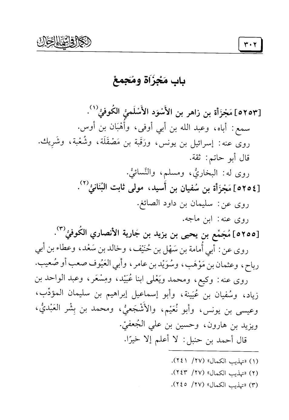 [٥٢٥٣] مَجْزَأة بن زاهر بن الأَسْود الأَسْلَمِي الكُوفِيُّ (¬١).