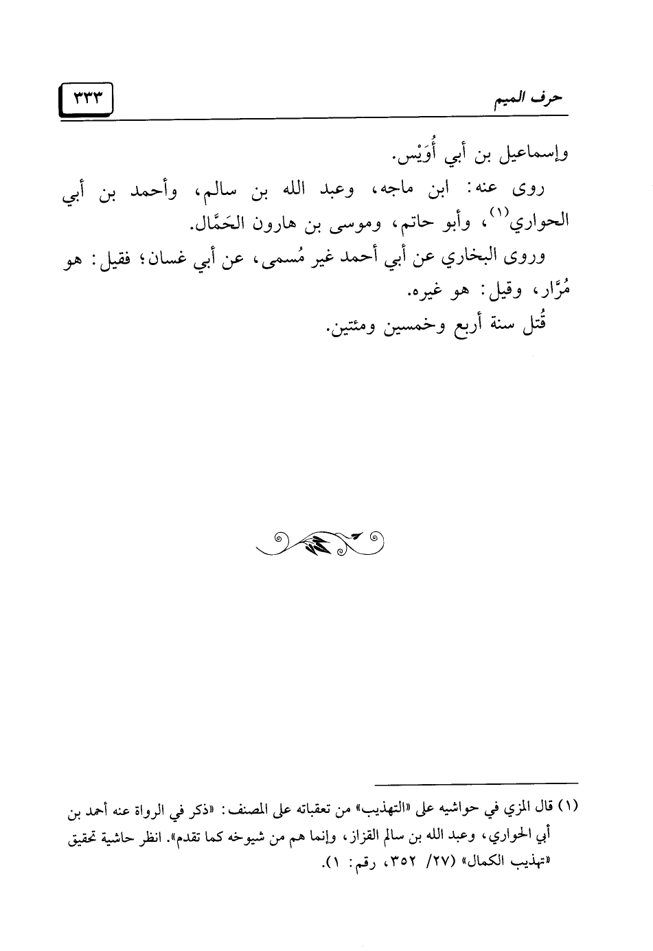 (¬١) قال المزي في حواشيه على "التهذيب" من تعقباته على المصنِّف: "ذكر في الرواة عنه أحمد بن أبي الحواري، وعبد الله بن سالم القزاز، وإنَّما هم من شيوخه كما تقدَّم". انظر حاشية تحقيق "تهذيب الكمال" (٢٧/ ٣٥٢، رقم: ١).