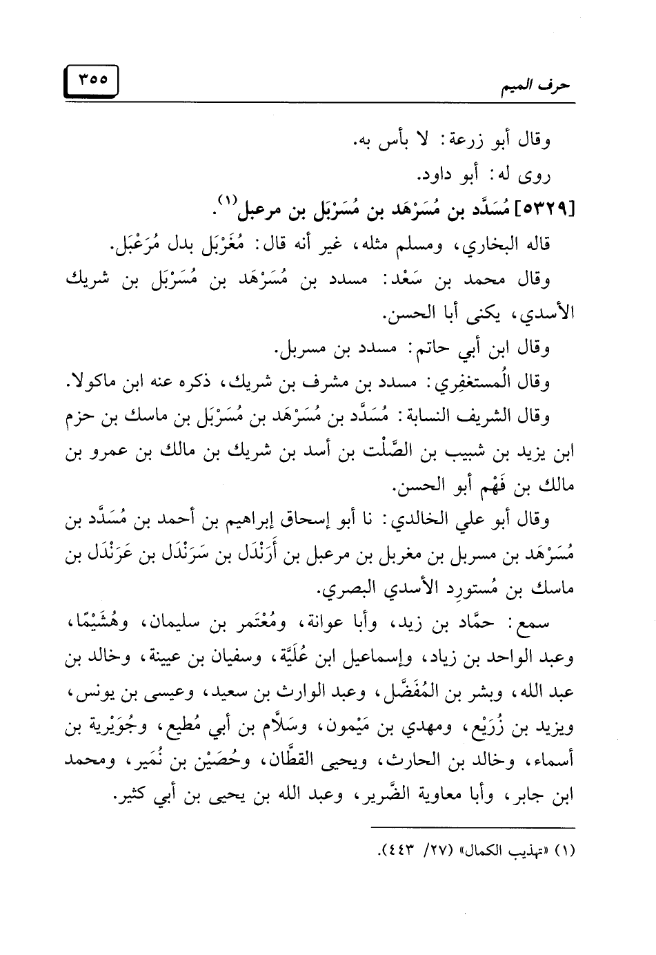 [٥٣٢٩] مُسَدَّد بن مُسَرْهَد بن مُسَرْبَل بن مرعبل (¬١).
