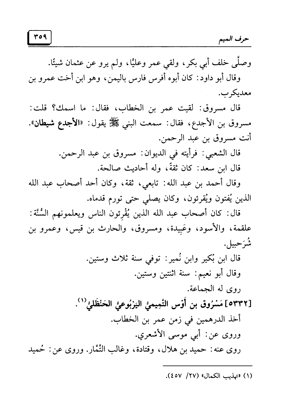 قال الشَّعْبِيّ: فرأيته في الديوان: مسروق بن عبد الرحمن.