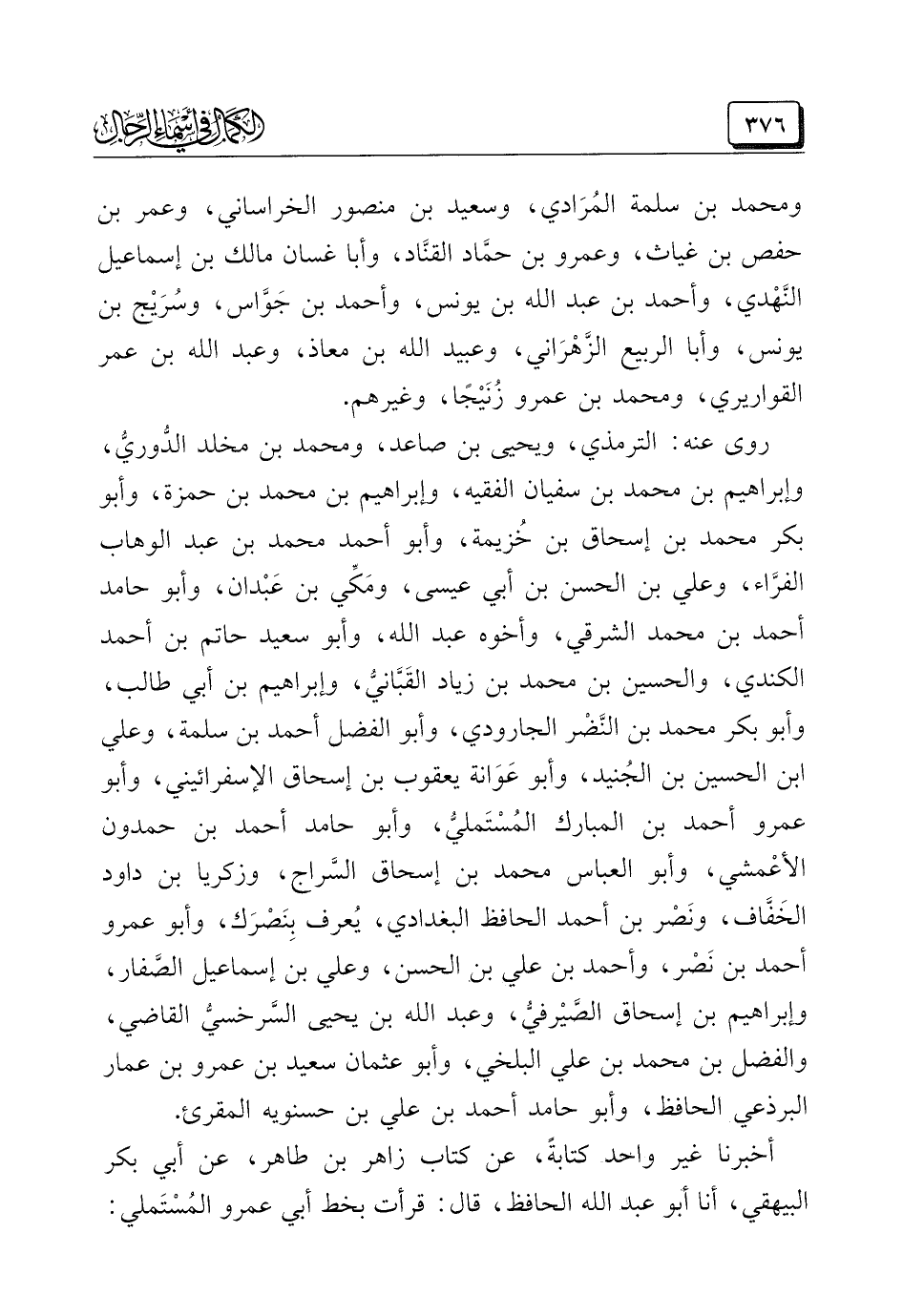أخبرنا غير واحد كتابةً، عن كتاب زاهر بن طاهر، عن أبي بكر البيهقي، أنا أبو عبد الله الحافظ، قال: قرأت بخط أبي عَمْرو المُسْتَمْلِي: