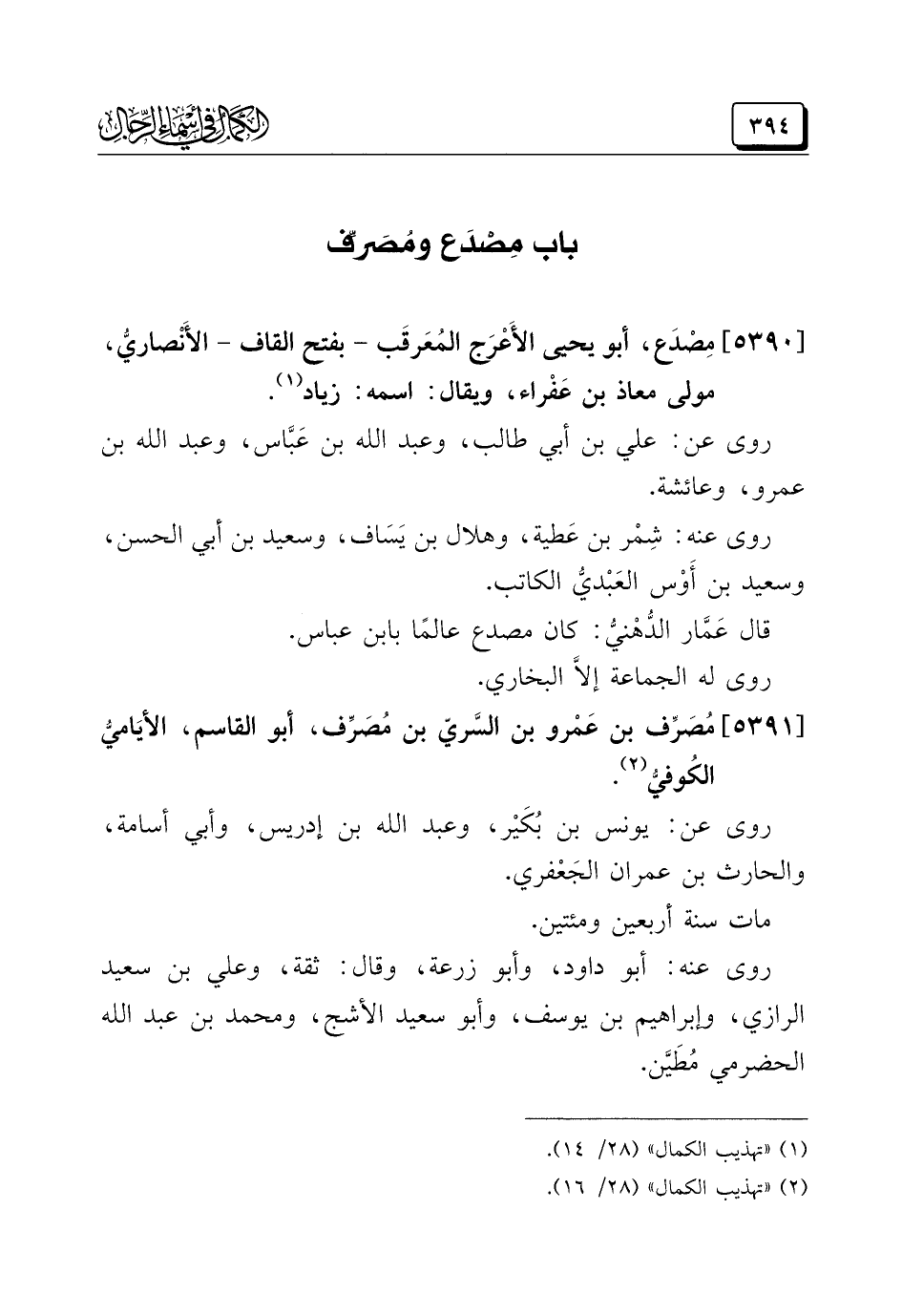 (¬١) "تهذيب الكمال" (٢٨/ ١٤).