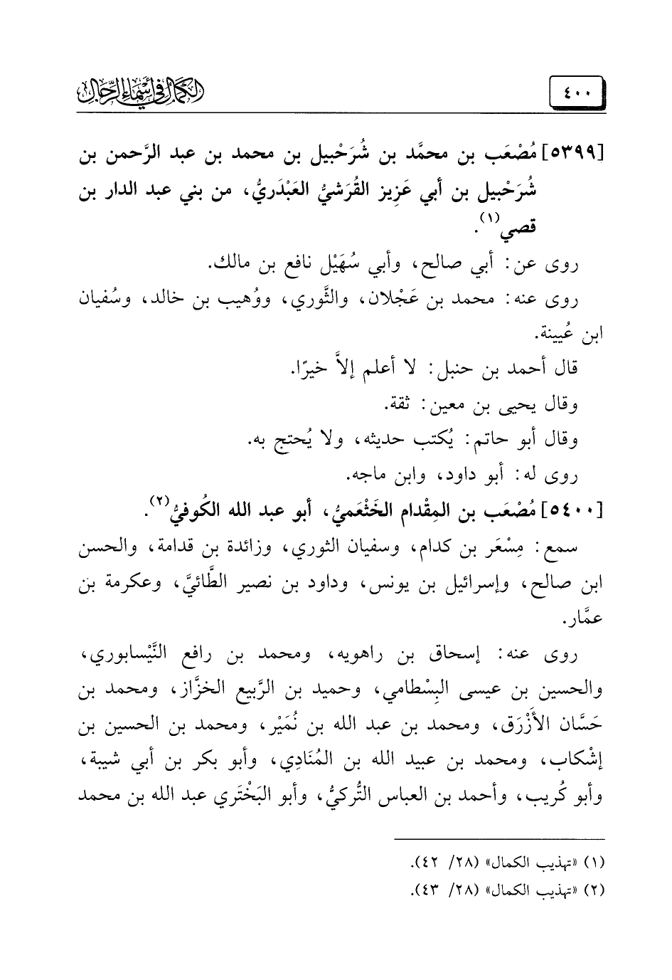 (¬٢) "تهذيب الكمال" (٢٨/ ٤٣).