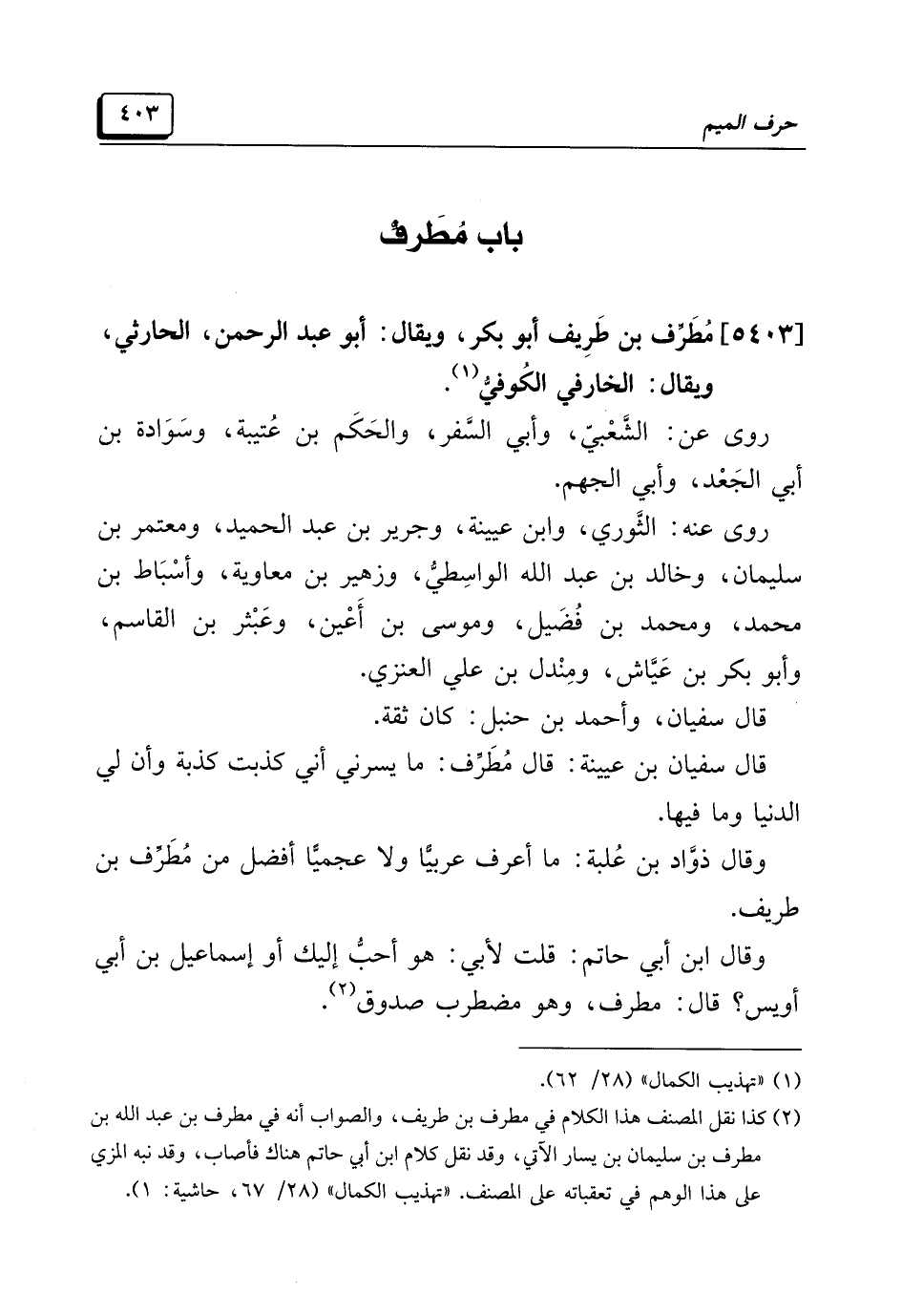 [٥٤٠٣] مُطَرِّف بن طَرِيف أبو بكر، ويقال: أبو عبد الرحمن، الحارثي، ويقال: الخارفي الكُوفِيُّ (¬١).