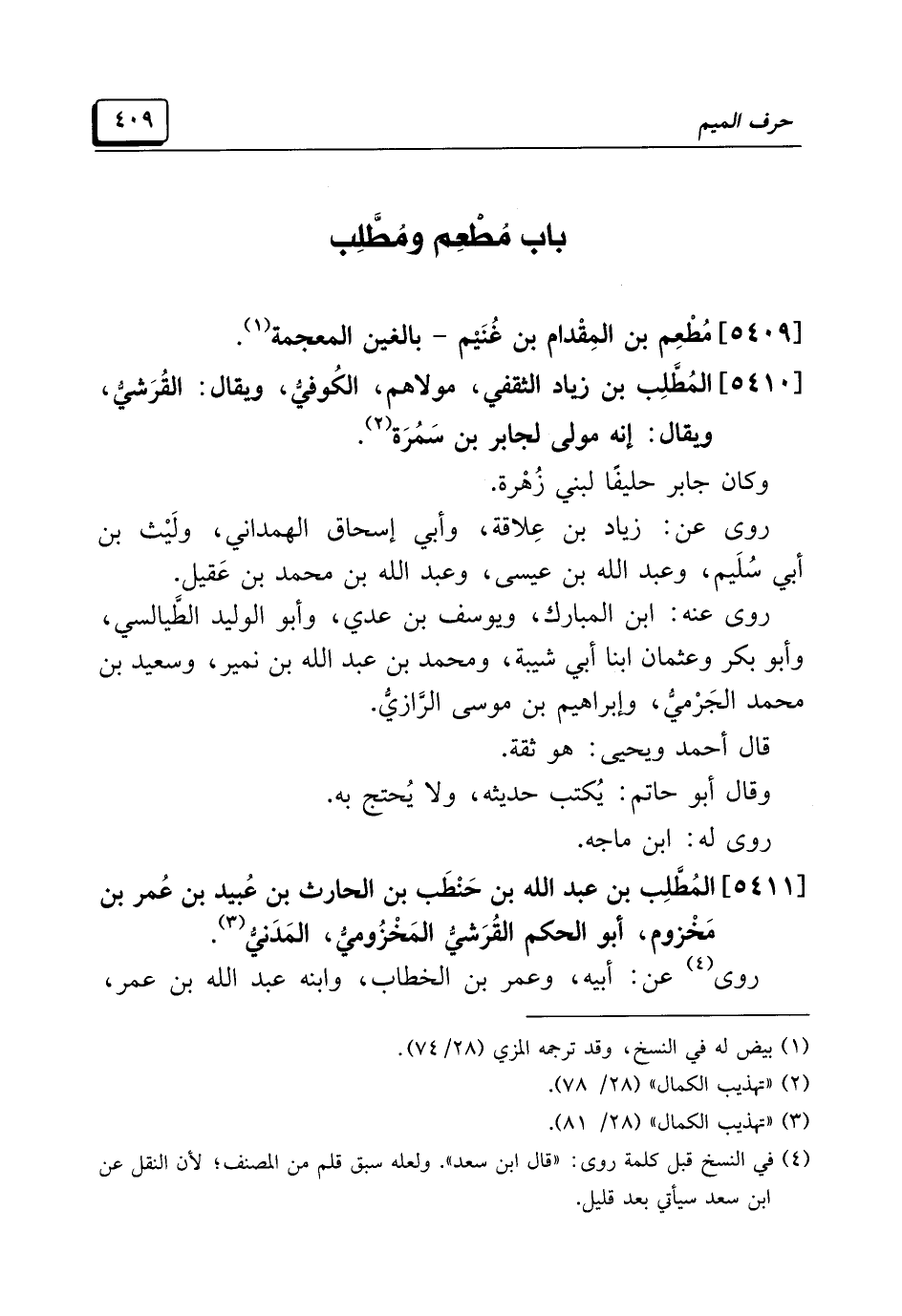 [٥٤١١] المُطَّلِب بن عبد الله بن حَنْطَب بن الحارث بن عُبَيْد بن عُمر بن مَخْزوم، أبو الحكم القُرَشِيُّ المَخْزُومِيُّ، المَدَنيُّ (¬٣).