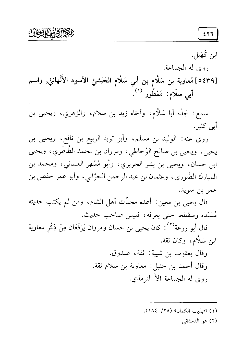 [٥٤٣٩] مُعَاوية بن سَلَّام بن أبي سَلَّام الحَبَشيُّ الأسود الأَلْهانيُّ, واسم أبي سلَّام: مَمْطُور (¬١).