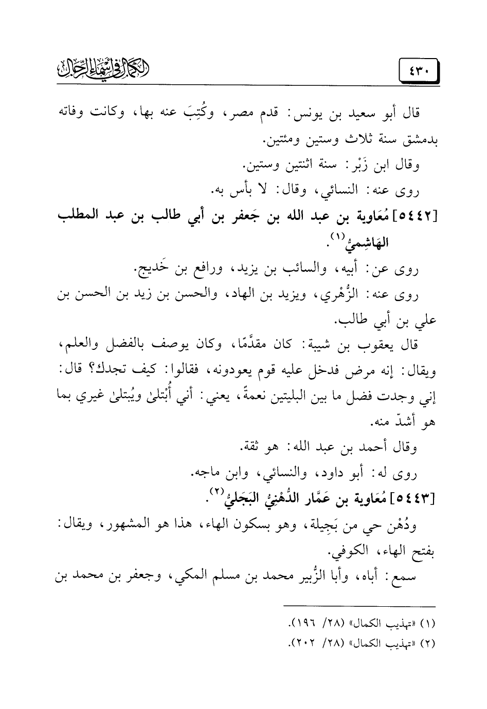 [٥٤٤٢] مُعَاوية بن عبد الله بن جعفر بن أبي طالب بن عبد المطلب الهَاشِميُّ (¬١).