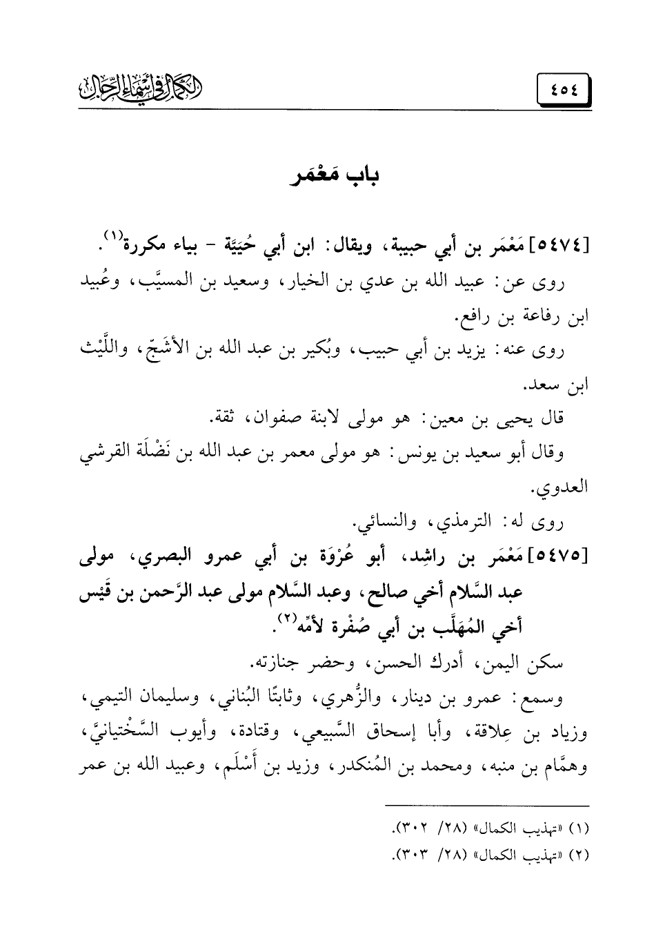 (¬٢) "تهذيب الكمال" (٢٨/ ٣٠٣).