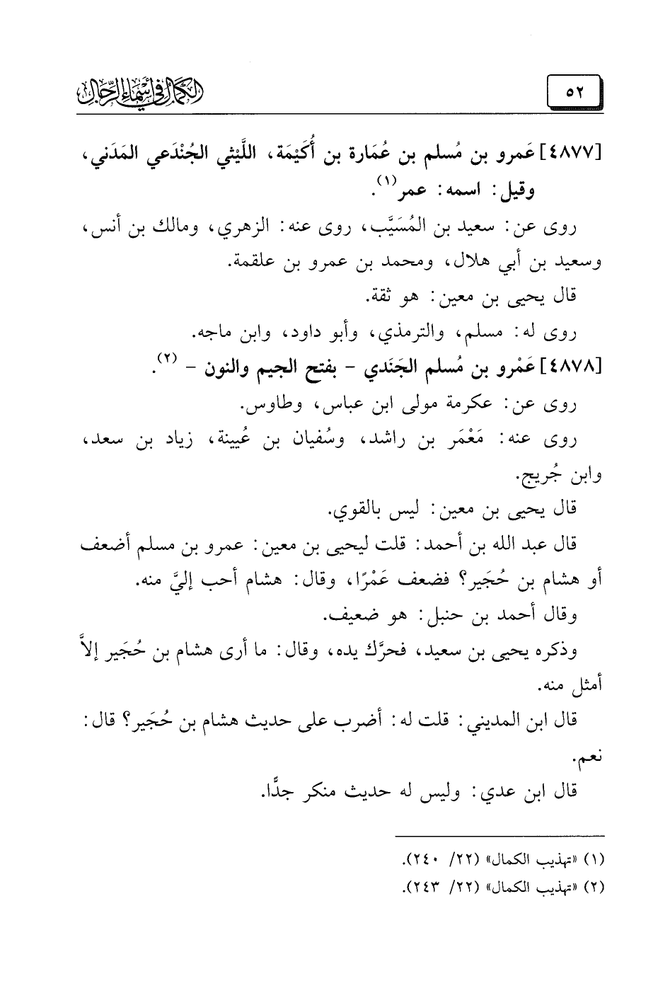 (¬٢) "تهذيب الكمال" (٢٢/ ٢٤٣).