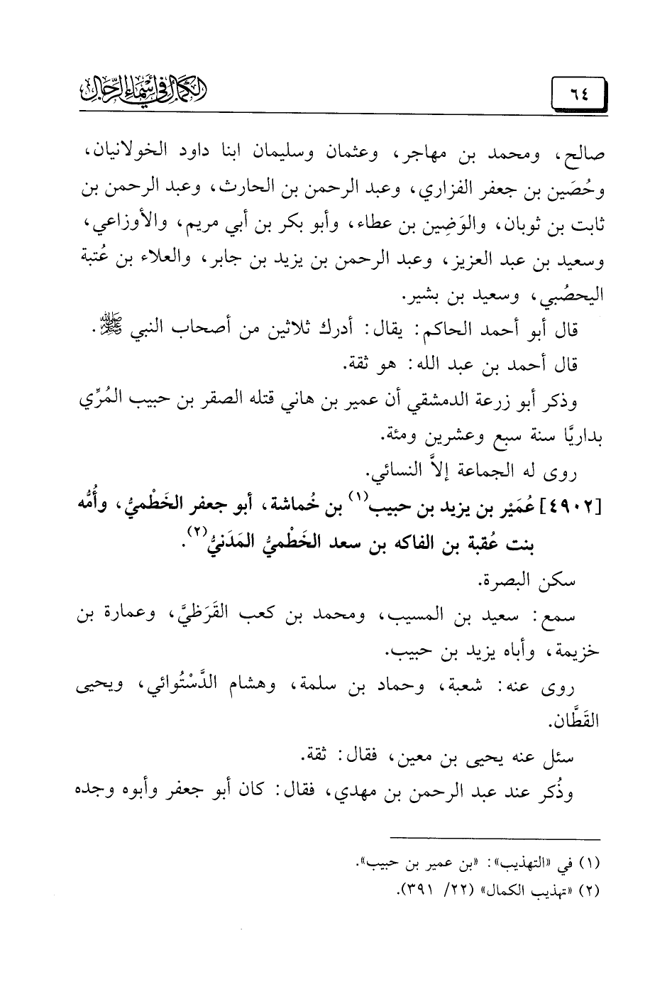 (¬٢) "تهذيب الكمال" (٢٢/ ٣٩١).