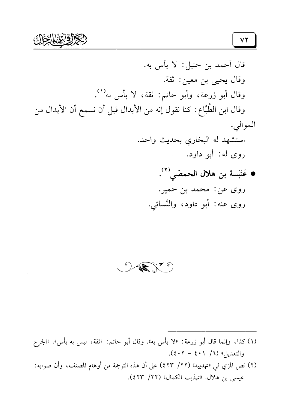 • عَنْبَسة بن هلال الحمصي (¬٢).