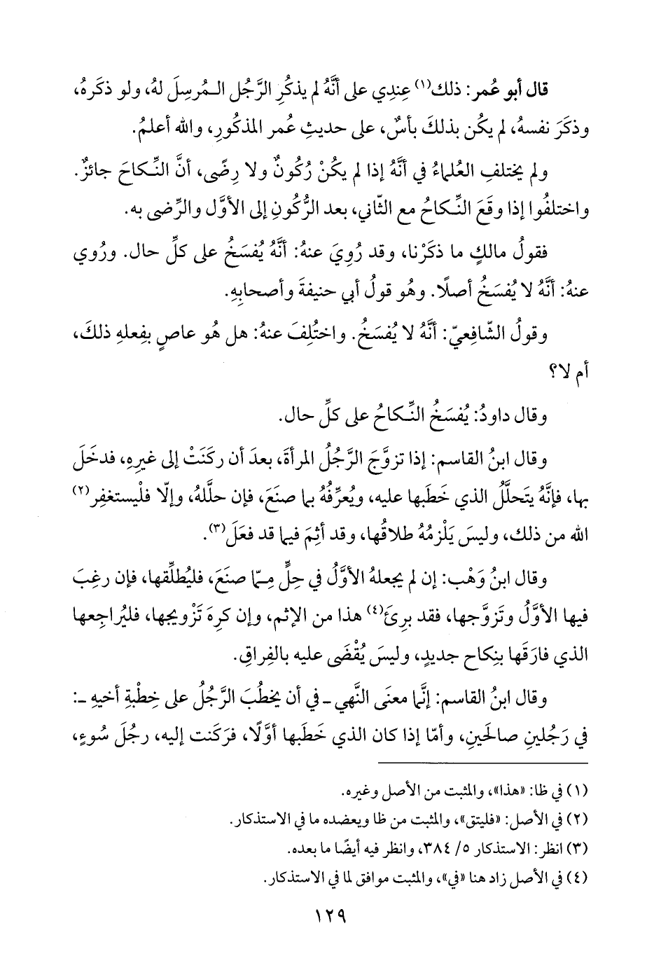(¬٤) في الأصل زاد هنا "في"، والمثبت موافق لما في الاستذكار.