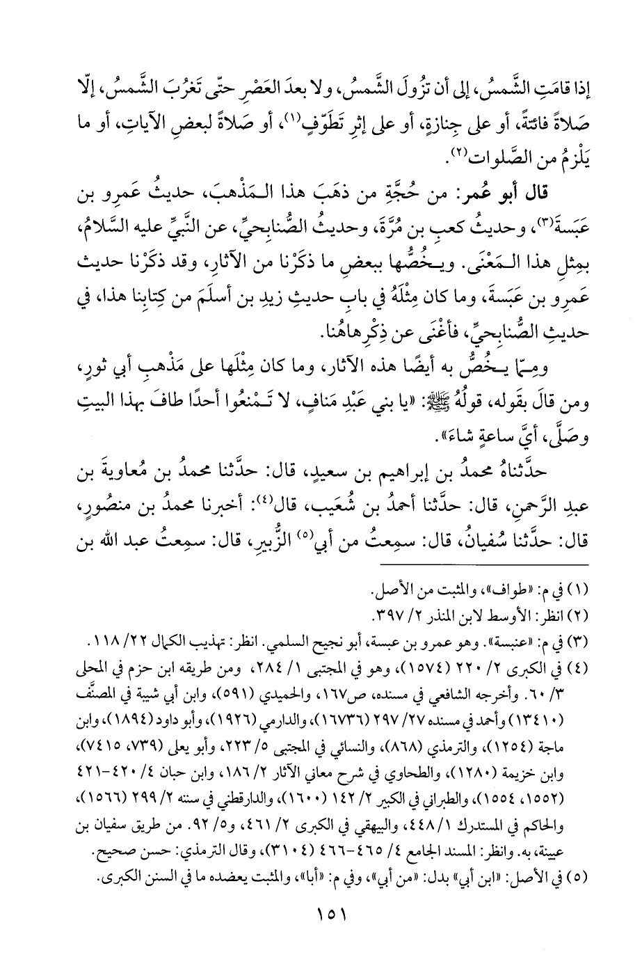 قال أبو عُمر: من حُجَّةِ من ذهَبَ هذا المَذْهبَ، حديثُ عَمرِو بن عَبَسةَ (¬٣)، وحديثُ كعبِ بن مُرَّةَ، وحديثُ الصُّنابِحيِّ، عن النَّبيِّ عليه السَّلامُ، بمِثلِ هذا المَعْنَى. ويخُصُّها ببعضِ ما ذكَرْنا من الآثارِ، وقد ذكَرْنا حديث عَمرِو بن عَبَسةَ، وما كان مِثْلَهُ في بابِ حديث زيدِ بن أسلَمَ من كِتابِنا هذا، في حديثِ الصُّنابِحيِّ، فأغْنَى عن ذِكْرِ هاهُنا.