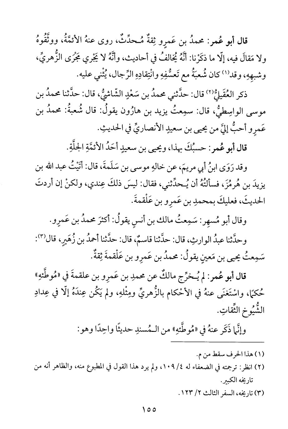 وقال أبو مُسهِر: سَمِعتُ مالك بن أَنَسٍ يقولُ: أكثرَ محمدُ بن عَمرٍو.
