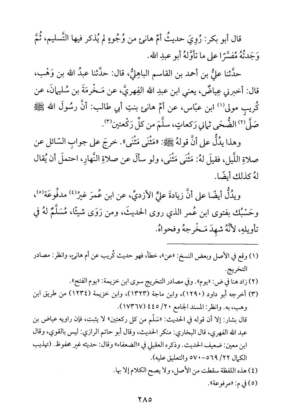 قال أبو بكر: رُوِيَ حديثُ أمِّ هانئ من وُجُوهٍ لم يُذكر فيها التَّسليم، ثُمَّ وَجَدتُهُ مُفسَّرًا على ما تأوَّلهُ أبو عبدِ الله.