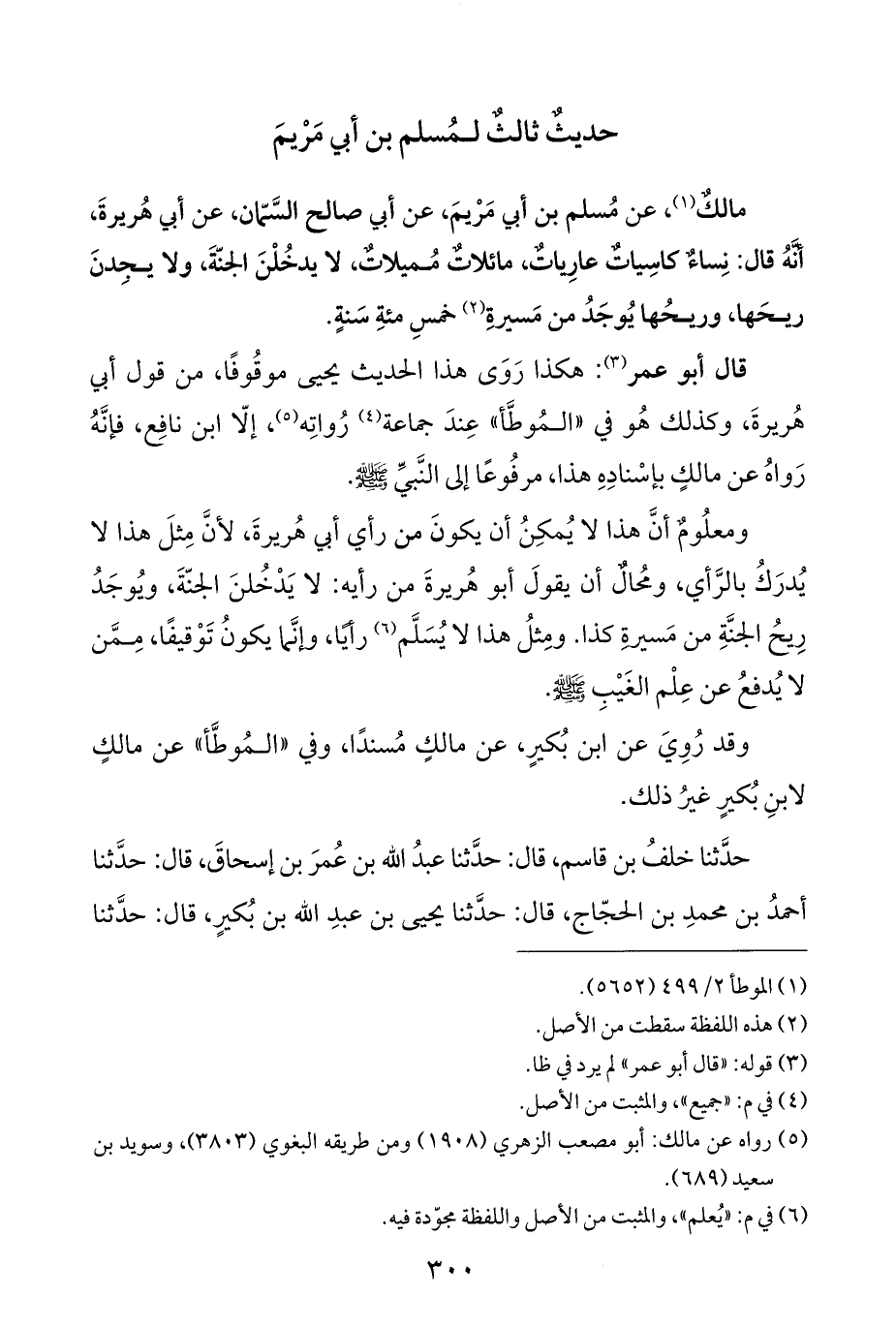 (¬٥) رواه عن مالك: أبو مصعب الزهري (١٩٠٨) ومن طريقه البغوي (٣٨٠٣)، وسويد بن سعيد (٦٨٩).