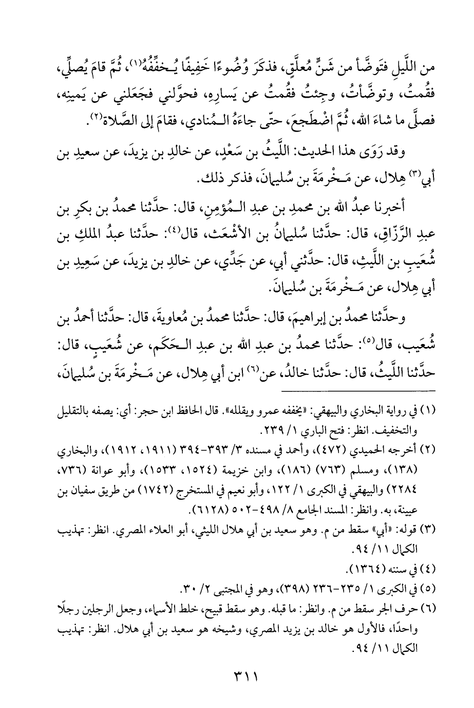 وحَدَّثَنَا محمدُ بن إبراهيمَ، قال: حَدَّثَنَا محمدُ بن مُعاويةَ، قال: حَدَّثَنَا أحمدُ بن شُعَيب، قال (¬٥): حَدَّثَنَا محمدُ بن عبدِ الله بن عبدِ الحَكَم، عن شُعَيبٍ، قال: حَدَّثَنَا اللَّيثُ، قال: حَدَّثَنَا خالدُ، عن (¬٦) ابن أبي هِلال، عن مَخْرمَةَ بن سُليمانَ،