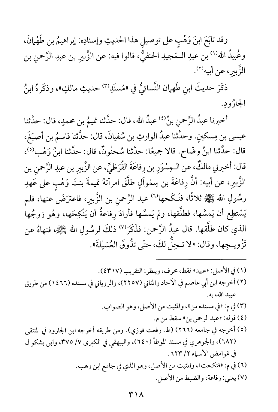 وقد تابَعَ ابنَ وَهْبٍ على توصيلِ هذا الحديثِ وإسنادِه: إبراهيمُ بن طَهْمانَ، وعُبيدُ الله (١) بن عبدِ المَجيدِ الحنفيُّ، قالوا فيه: عن الزَّبيرِ بن عبدِ الرَّحمنِ بن الزَّبيرِ، عن أبيه (¬٢).