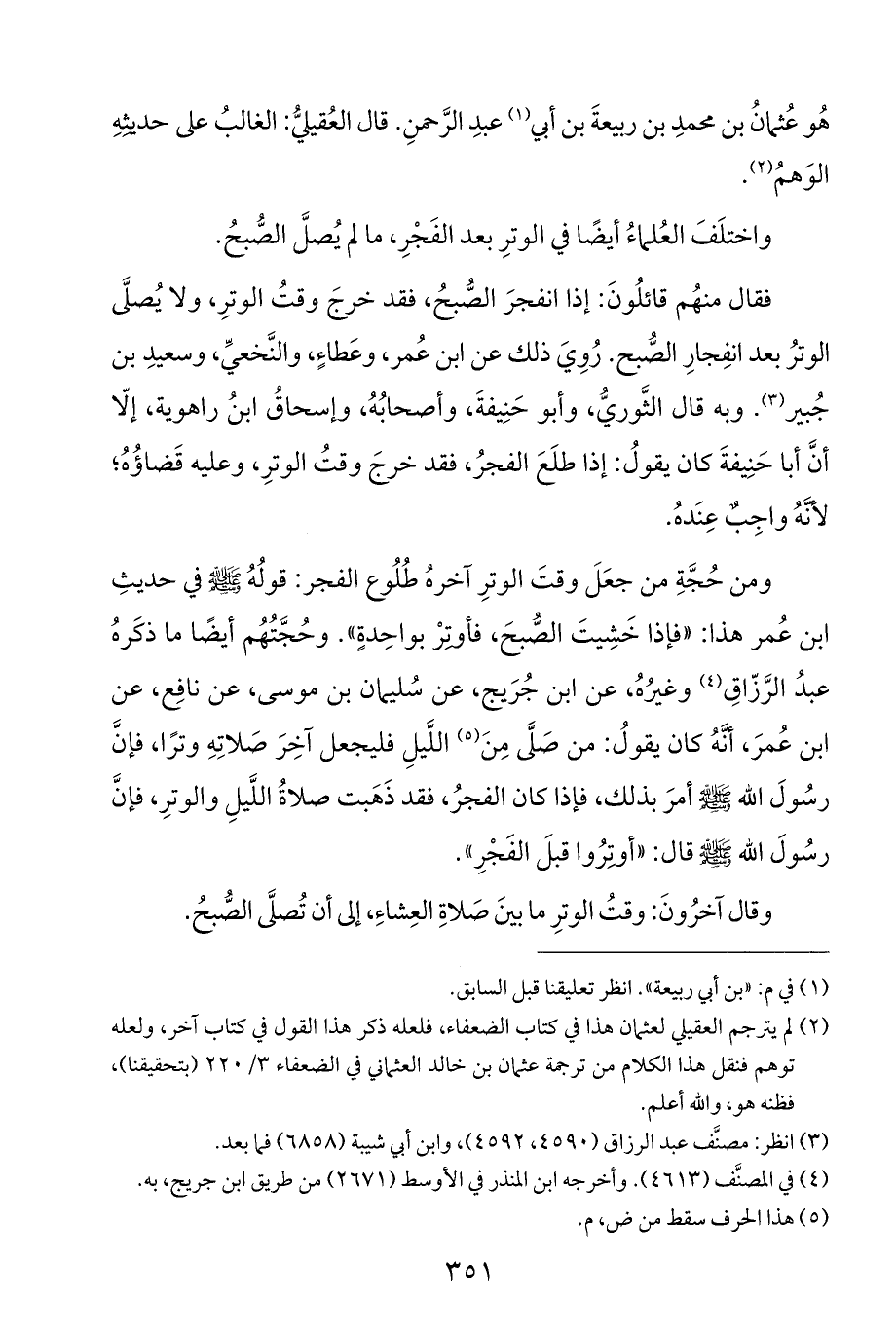 (¬٢) لم يترجم العقيلي لعثمان هذا في كتاب الضعفاء، فلعله ذكر هذا القول في كتاب آخر، ولعله توهم فنقل هذا الكلام من ترجمة عثمان بن خالد العثماني في الضعفاء ٣/ ٢٢٠ (بتحقيقنا)، فظنه هو، واللّه أعلم.