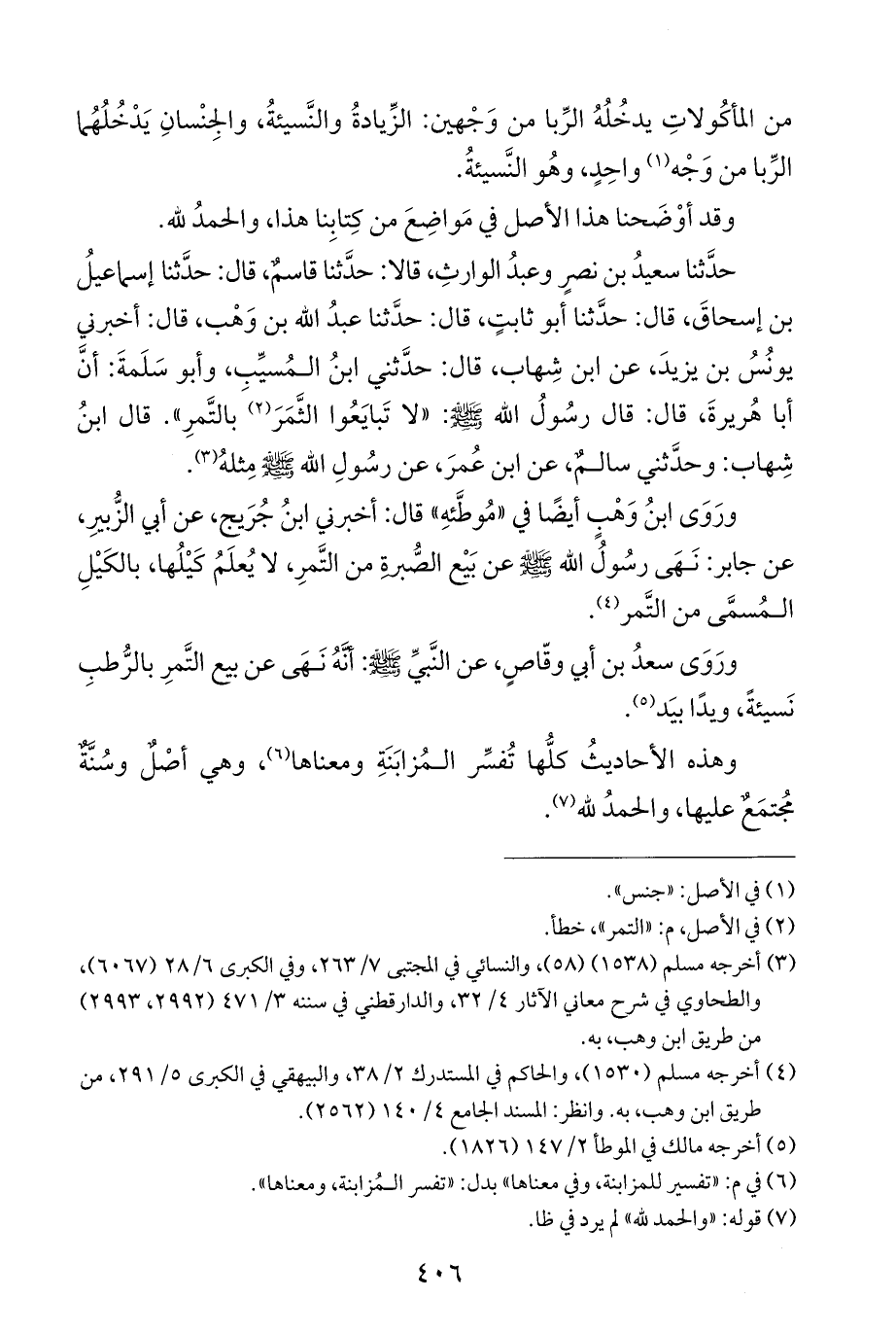 (¬٦) في م: "تفسير للمزابنة، وفي معناها" بدل: "تفسر المُزابنة، ومعناها".