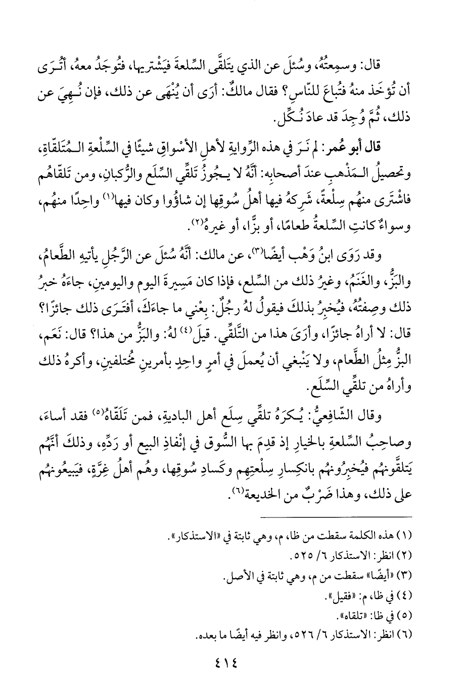 (¬٦) نظر: الاستذكار ٦/ ٥٢٦، وانظر فيه أيضًا ما بعده.