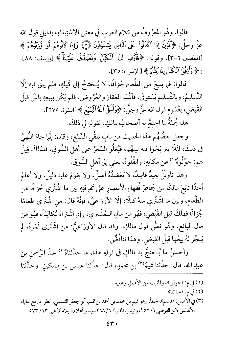 (¬٣) في الأصل: "قاسم"، خطأ، وهو تميم بن محمد بن أحمد بن تميم، أبو جعفر التميمي. انظر: تاريخ علماء الأندلس لابن الفرضي ١/ ١٥٢، وترتيب المدارك ٦/ ٢٦٨، وسير أعلام النبلاء للذهبي ١٣/ ٥٧٣.