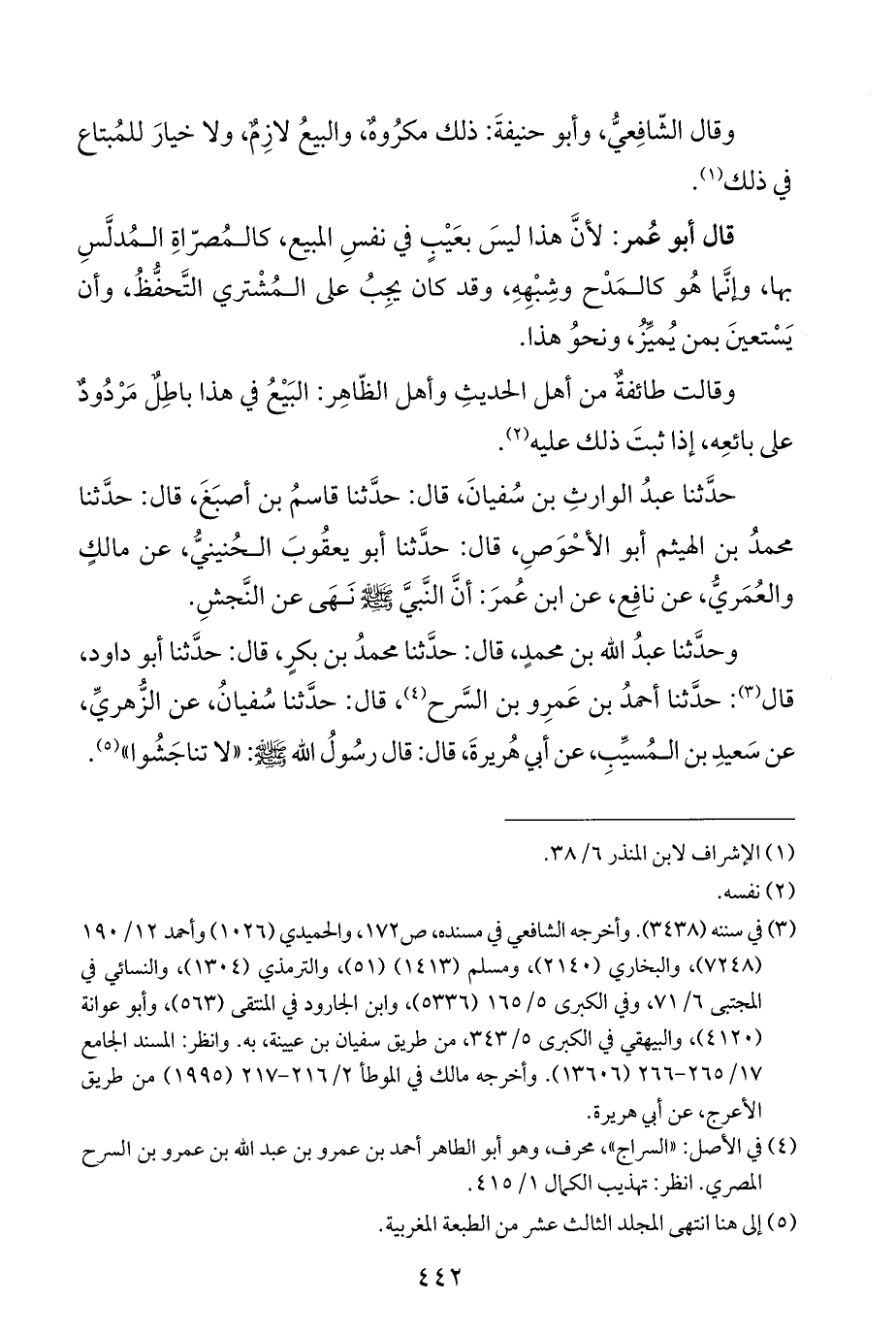 وحدَّثنا عبدُ الله بن محمدٍ، قال: حدَّثنا محمدُ بن بكرٍ، قال: حدَّثنا أبو داود، قال (¬٣): حدَّثنا أحمدُ بن عَمرِو بن السَّرح (¬٤)، قال: حدَّثنا سُفيانُ، عن الزُّهريِّ، عن سَعيدِ بن المُسيِّبِ، عن أبي هُريرةَ، قال: قال رسُولُ الله - صلى الله عليه وسلم -: "لا تناجَشُوا" (¬٥)