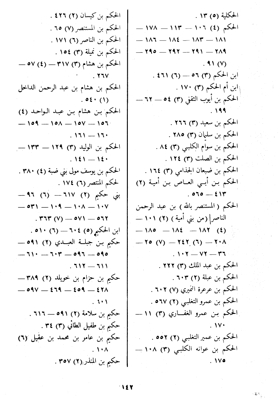 الحكم بن عوانه الكلبي (3) 108- الحكم بن كيسان (2) 426.