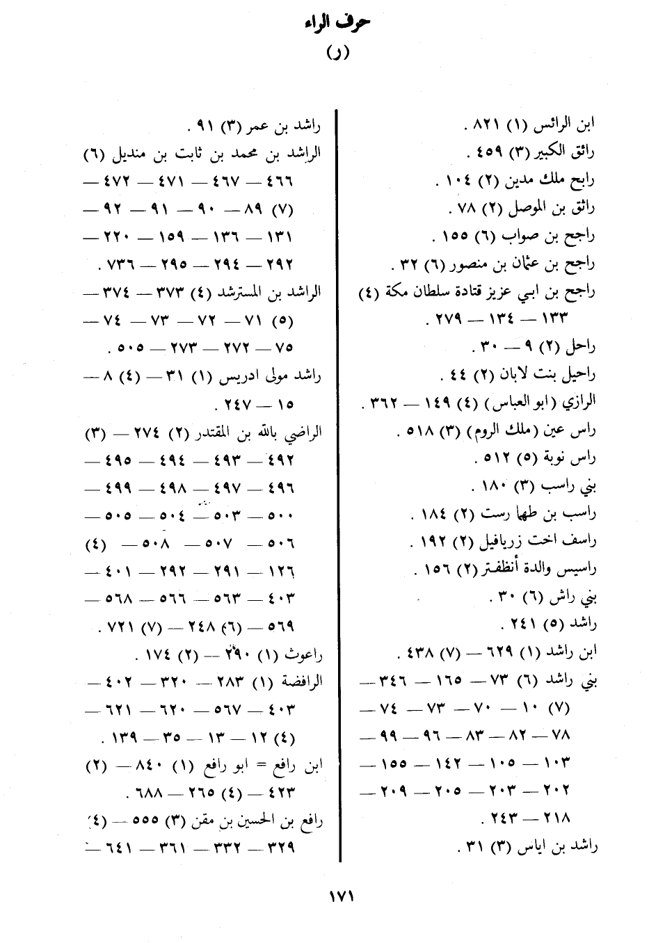 بني راشد (6) 73- 165- 346 (7) 10- 70- 73- 74 78- 82- 83- 96- 99 103- 105- 142- 155 202- 203- 205- 209 218- 243.