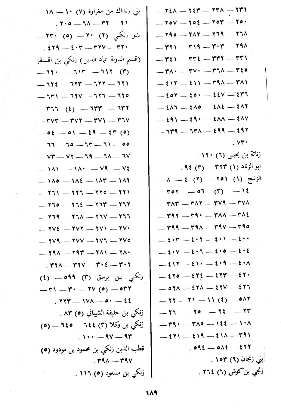 (قسيم الدولة عماد الدين) زنكي بن آقسنقر (3) 612- 613- 620 621- 622- 623- 624 625- 626- 627- 631 632- 633- (4) 366 367- 371- 372- 373 (5) 43- 49- 51- 54 55- 61- 63- 65- 66 67- 68- 69- 72- 73 74- 79- 180- 181 182- 183- 184- 185 221- 225- 226- 261 262- 263- 264- 265 266- 267- 268- 269 270- 271- 272- 274 275- 276- 277- 279 280- 281- 293- 298 302- 304- 327- 328.