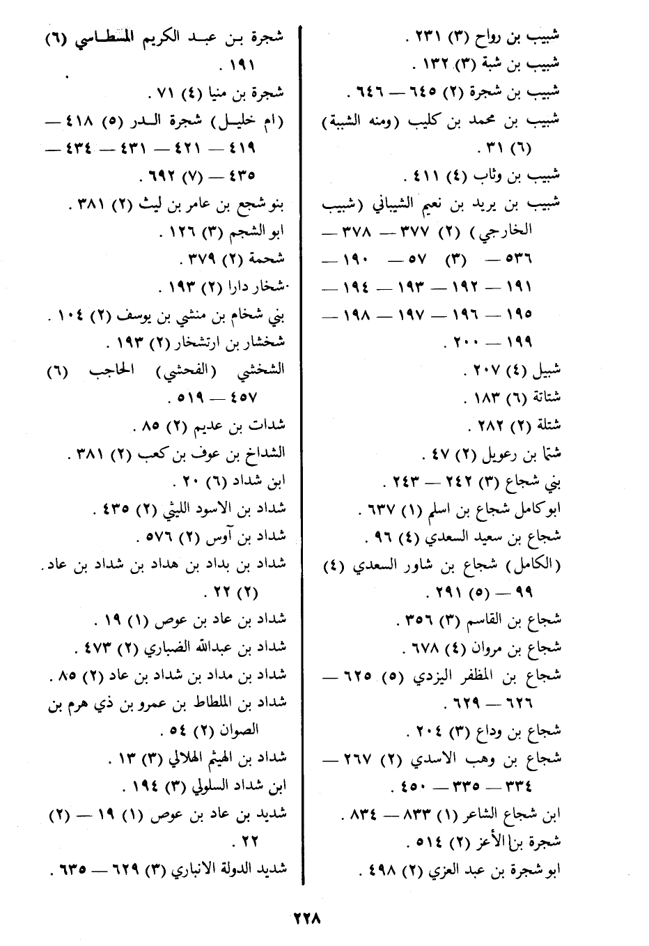 ابو شجرة بن عبد العزي (2) 498. شجرة بن عبد الكريم المسطاسي (6) 191.