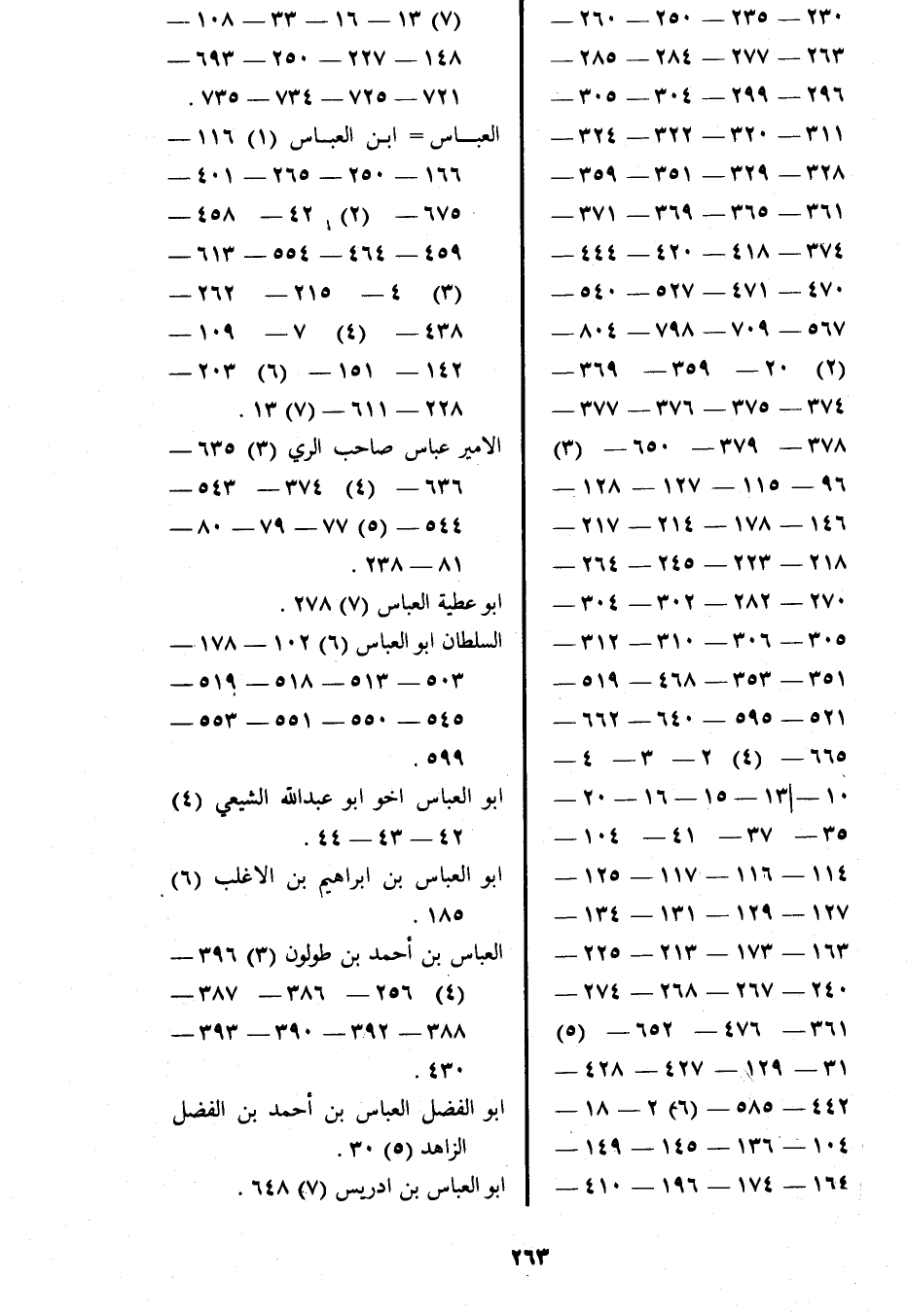 العباس ابن العباس (1) 116 166- 250- 265- 401 675- (2) 42- 458 459- 464- 554- 613 (3) 4- 215- 262 438- (4) 7- 109 142- 151- (6) 203 228- 611- (7) 13.