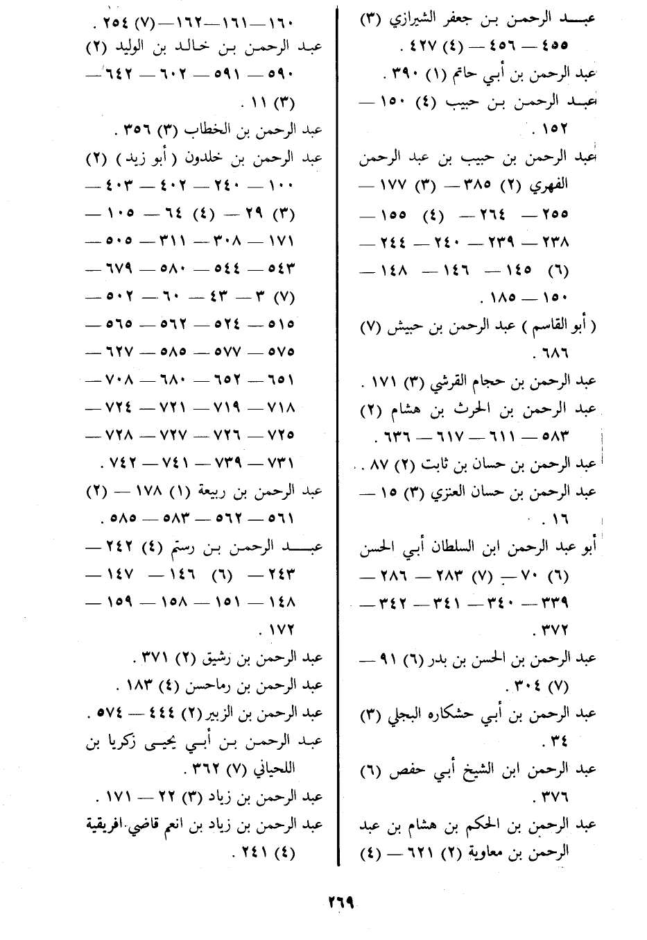 عبد الرحمن بن حبيب بن عبد الرحمن الفهري (2) 385- (3) 177 255- 264- (4) 155 238- 239- 240- 244 (6) 145- 146- 148 150- 185.