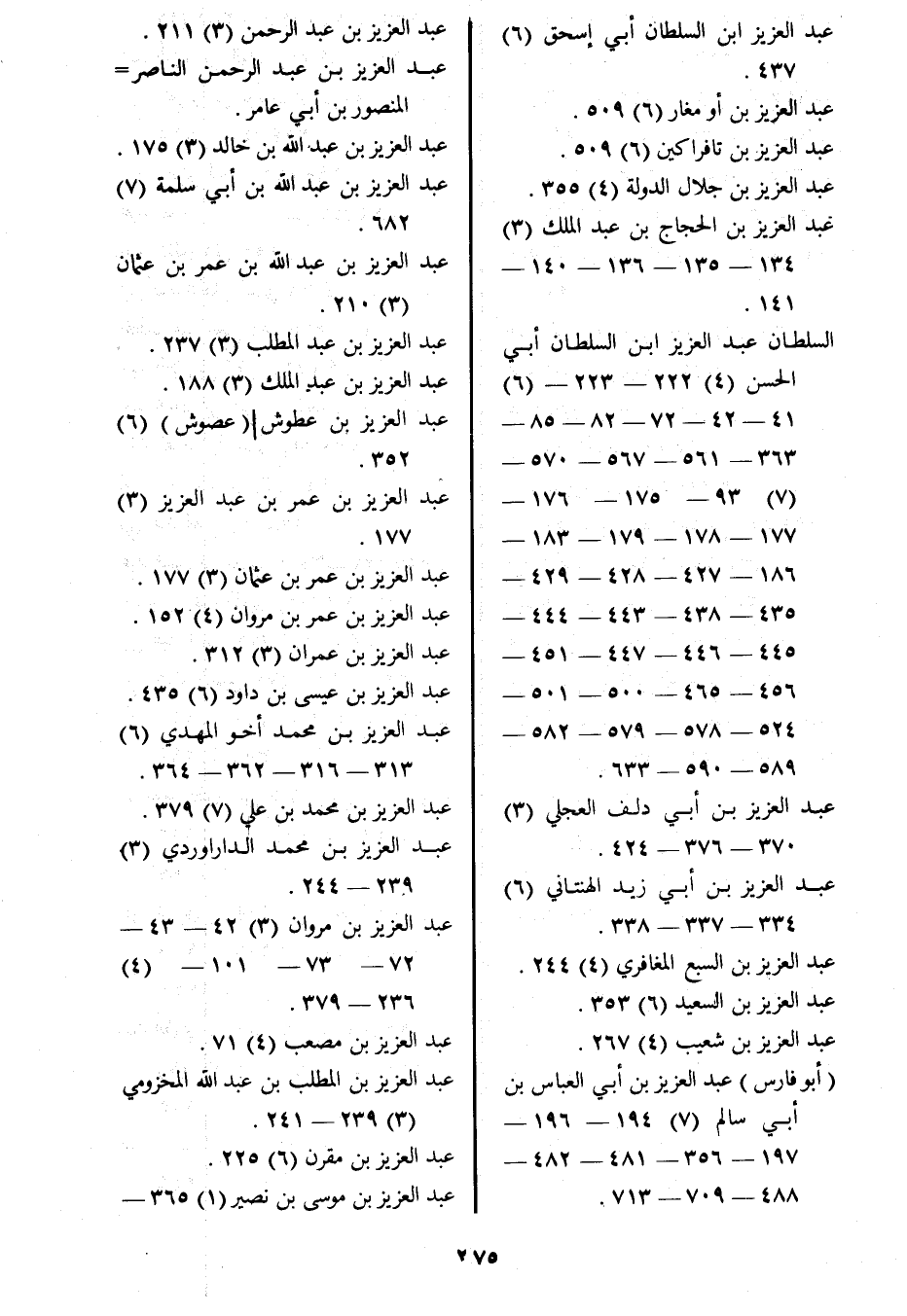 (أبو فارس) عبد العزيز بن أبي العباس بن أبي سالم (7) 194- 196 197- 356- 481- 482 488- 709- 713. عبد العزيز بن عبد الرحمن (3) 211.