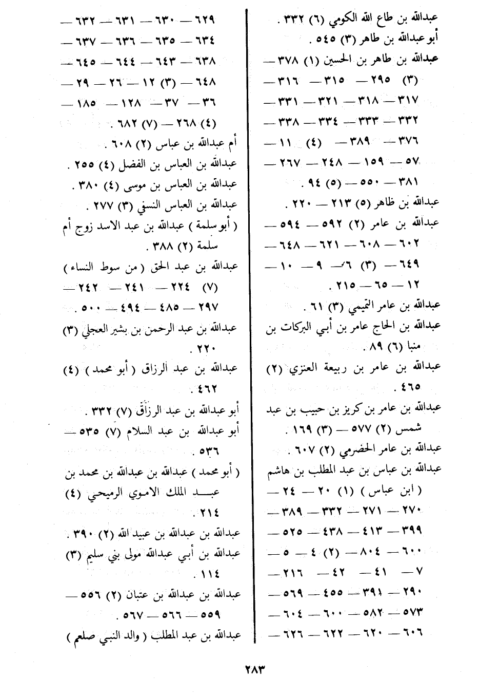 عبد الله بن عامر (2) 592- 594 602- 608- 621- 648 649- (3) 6- 9- 10 12- 65- 215.