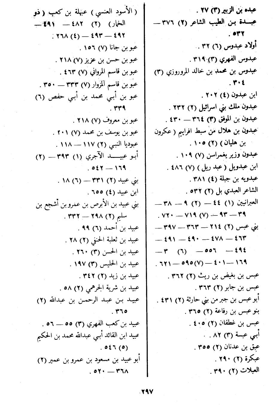 بني عبس (2) 214- 363- 397 463- 478- 490- 491 494- 556- (6) 3 169- 401 (7) 595- 621.