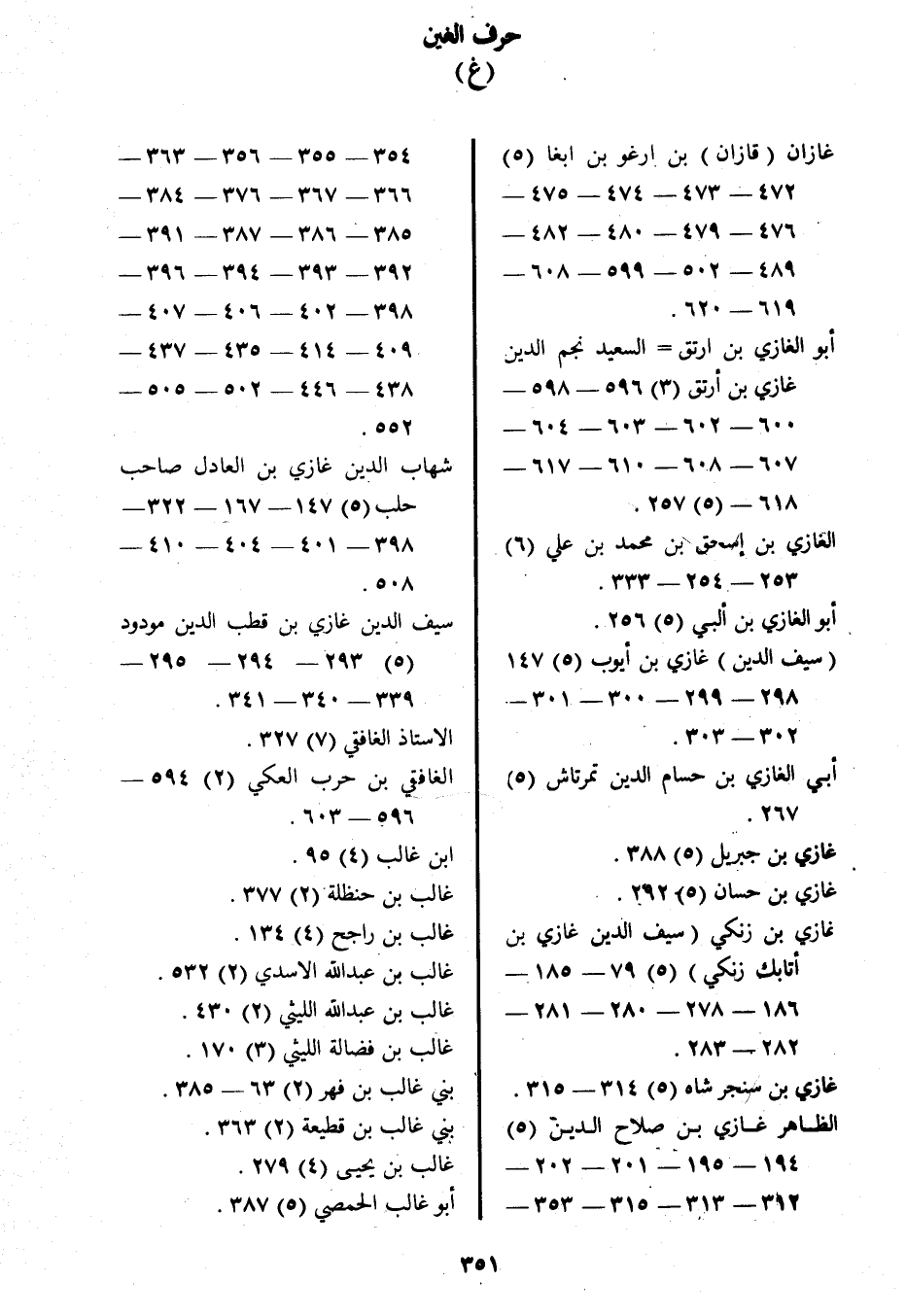 حرف الغين (غ) غازان (قازان) بن ارغو بن ابغا (5) 472- 473- 474- 475 476- 479- 480- 482 489- 502- 599- 608 619- 620.